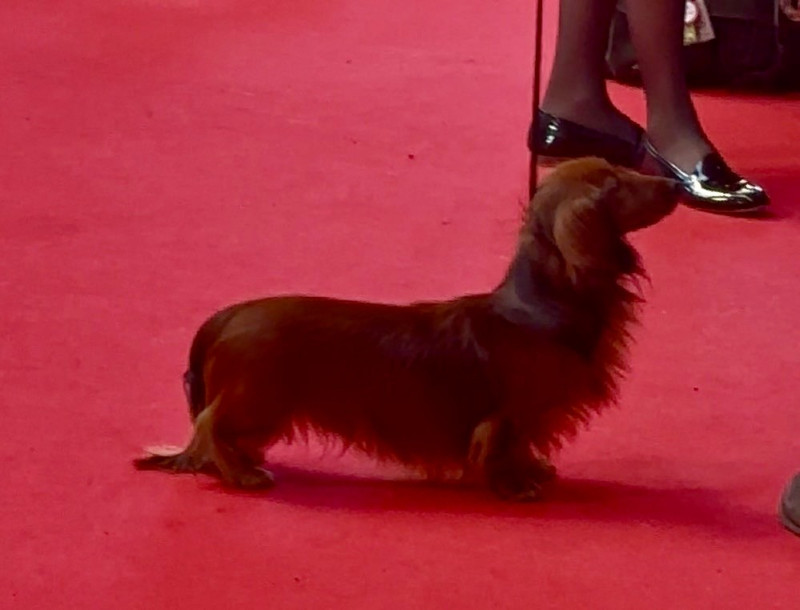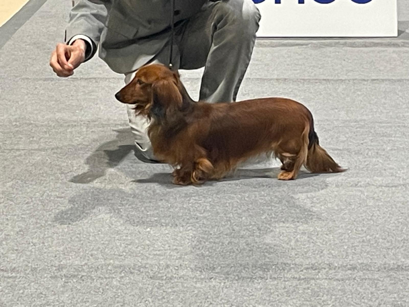 TP 35CM. EXC TETE ET ENCOLURE. BONNE POITRINE ET TRES BON DOS. TRES BONNES ANGULATIONS, COULEUR ET QUALITE DE POIL. TRES BON MOUVEMENT ET TRES BONNE PRESENTATION